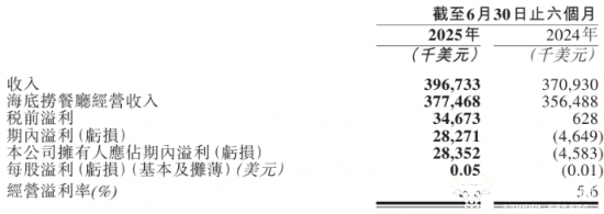 据特海国际2025年半年度报告,公司今年上半年实现收入为3.97亿美元,同比增长7.0%,公司拥有人应占期内溢利由去年同期的亏损458.3万美元增长为盈利2835.2万美元,成功实现由亏转盈,餐厅平均翻台率同比提升至3.9次/天,餐厅数量为126家,与去年同期相比净增4家,表现十分亮眼。