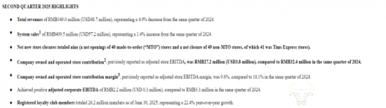 据Tims天好中国2025年二季度报告,今年二季度,公司实现营收3.49亿元,同比下降4.9%,公司调整后EBITDA由去年同期的330万元下降为220万元,其中食品收入同比增长8.6%,占比由去年同期的32.5%提升至35.2%,创历史新高。