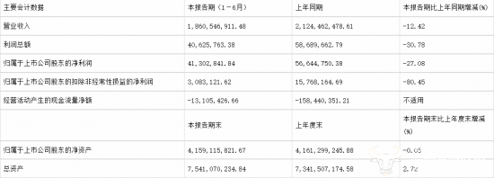 报告显示,上半年公司实现营业收入18.60亿元,同比下降12.42%;归母净利润4130.28万元,同比下滑27.08%;扣非净利润仅为308.31万元,大幅下降80.45%,盈利能力明显承压。此外,经营活动产生的现金流量净额为负,达-1310.54万元,或对资金链形成一定压力。