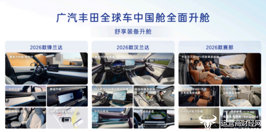 如果说这次产品升级用什么关键词最能概括,那一定是“入门价值大幅提升”。四款2026款全球车在智能化、高价值感等方面全面进阶,且多数升级均为“全系标配”。广汽丰田没有在顶配车型上堆砌“炫技型配置”,而是选择把用户最常用、最有感知、最需要的功能下放至入门版,直接提升入门版的高价值。