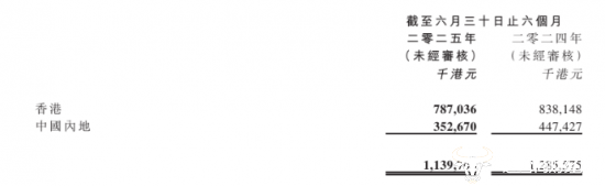 分地区来看,今年上半年,公司在香 港地区收入为7.87亿元,同比下跌6.1%,在中国内地收入为3.53亿元,同比下降21.2%。