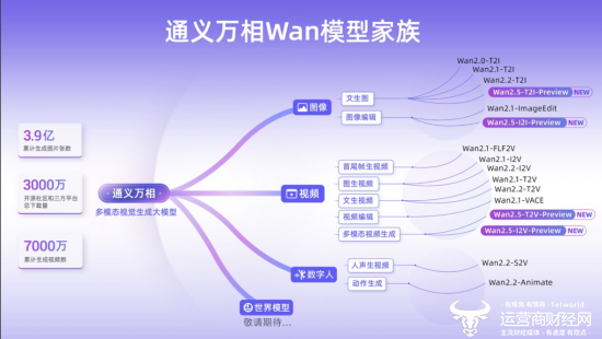 通义万相模型家族已支持文生图、文生视频、图生视频、人声生视频和动作生成等10多种视觉创作能力,累计生成3.9亿张图片、7000万个视频。自今年 2 月以来,通义万相已连续开源20多款模型,在开源社区和三方平台的下载量已超3000万,是开源社区最受欢迎的视频生成模型之一。