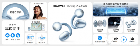 2025年9月24日,在华为穿戴音频新品线上发布会上,HUAWEI FreeClip 2 耳夹耳机焕新亮相。作为行业首款创新C形桥架构的开放式耳机,HUAWEI FreeClip融合美学与科技,成为独特的象征。此次全新升级的HUAWEI FreeClip 2 耳夹耳机在C形桥架构上实现突破,带来了更加轻盈、稳固、贴合耳廓的佩戴体验。同时,HUAWEI FreeClip 2 耳夹耳机搭载华为自研的第三代音频芯片和超澎湃双擎单元,将舒适佩戴、时尚设计、澎湃音质与智慧体验巧妙融合,开创了开放式耳机领域的全新可能。