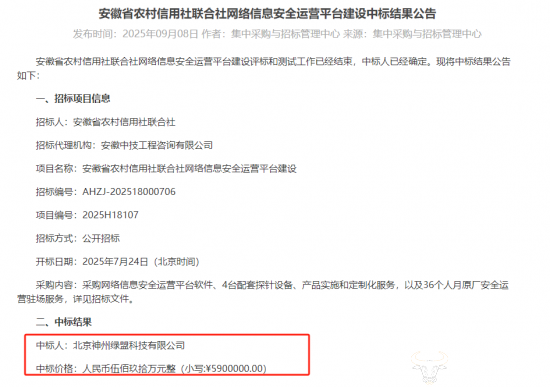 近日,安徽省农村信用社联合社网络信息安全运营平台建设项目公示中标结果,第一中标候选人竟然不是最终的中标人,到底是怎么回事?