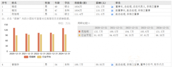 而在去年公司业绩下滑的背景下,公司部分高管薪酬却不降反增。范旭明2024年薪酬为131.5万元,相较于2023年的105.6万元,增长了25.9万元,是公司高管中涨薪最多的,薪酬处于公司高管中的较高水平,比董事长褚浚还高,更是远超另外两位副总经理褚剑和曾细华。