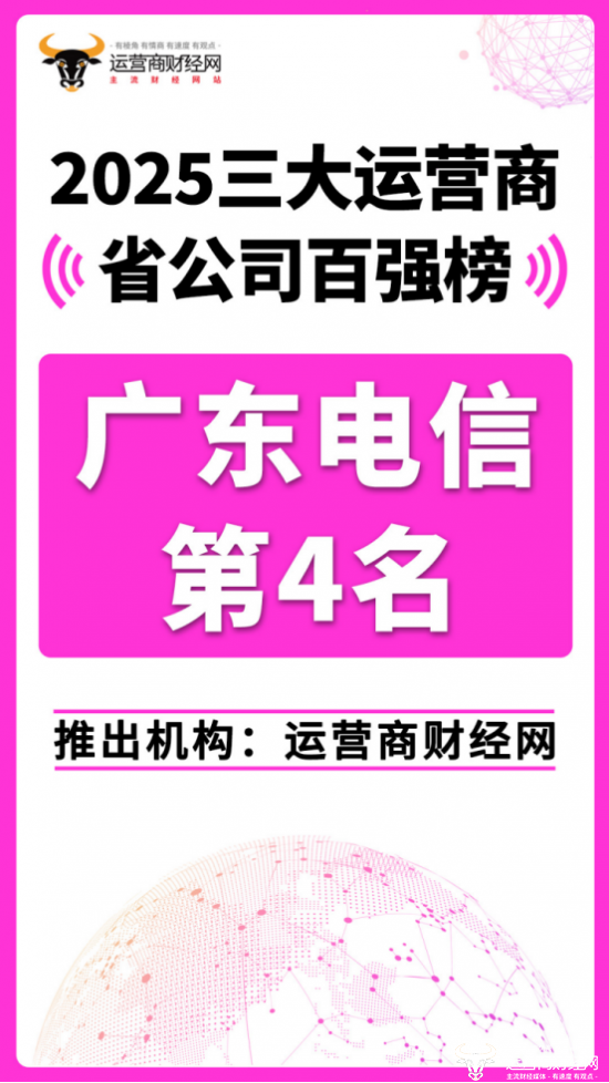 日前,运营商财经网正式推出“2025三大运营商省公司百强榜”!其中广东电信跻身前五,位列总榜第四。
