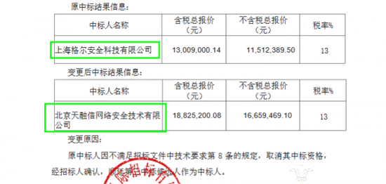 这意味着,如果不出意外,原本排名第三、报价在三家中最高的北京天融信竟成为最终中标人!