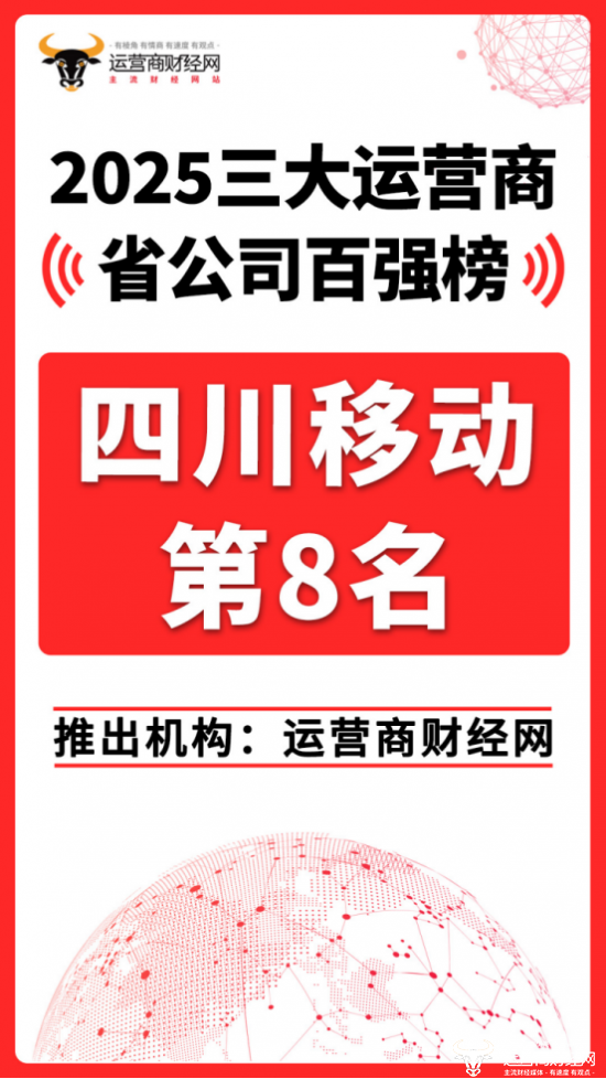日前,运营商财经网重磅推出“2025三大运营商省公司百强榜”!其中四川移动成为西南地区两个进入前十的运营商之一,位列总榜第八。