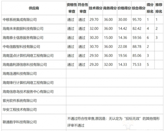 就在以为项目尘埃落定之际,中移集成的中标结果却遭到了推荐排名第二的“海南未来数据科技公司”的投诉。
