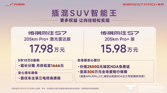 近期刚上市的向往S7 Pro+,同样是传祺以价值破局的体现。全新S7 Pro+系列售价15.98万元起,激光雷达版下探到17万级,不但价格更有诚意,配置含金量也在提高。据了解,向往S7 Pro+系列基于全新的EV+新能源平台打造,搭载1.5T插混动力系统,高通骁龙8295P芯片,并配备行业领先的可变焦、中长距激光雷达,同级唯一免费支持城区NDA,使用户的出行体验更智能、更高效、更安全。