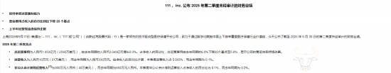 2025年第二季度,1药网的运营主体111公司净收入为32亿元人民币,同比下降6.4%。同时,净亏损扩大至730万元人民币,非GAAP净亏损为440万元人民币。截至2025年6月30日,公司现金及等价物为5.131亿元人民币。