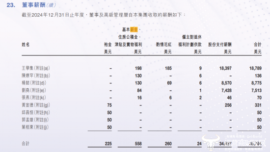 2023年他的薪酬为21.2万美元,而相比之下公司的另一位创始人兼董事长王学集则拿到了1923.5万美元的高薪;2024年情况同样如此,他的薪酬仅为13.6万美元。