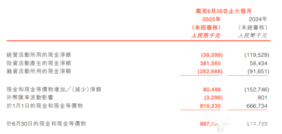 上半年,猎聘投资活动所产生的现金净额达到了3.82亿元,较2024年同期的584.34万元有了大幅的提升。期内现金和现金等价物达到了8.87亿元,较2024年有所增加。