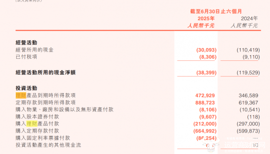 从年中财报中可以看到,截止到2025年的6月30日,今年上半年猎聘在购入理财产品这一项上总共花费2.12亿元。较2024年的2.97亿还有所下降。与此同时,这一时期的理财产品的到期回收金额也十分可观,达到了人民币为4.73亿元。