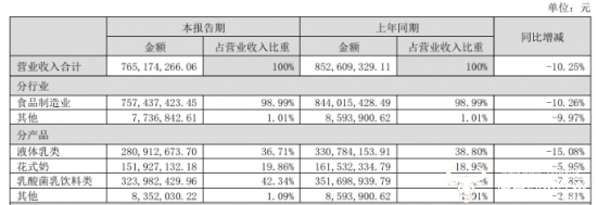 从产品来看,公司三大产品系列均有所下滑,其中乳酸菌乳饮料类收入为3.24亿元,虽营收占比仍超四成,但同比下滑7.88%,液体乳类收入为2.81亿元,同比下降15.08%,是下降最多的一个品类,而花式奶收入同比下降5.95%至1.52亿元。