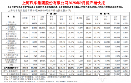 公开数据显示,2025年9月,上汽集团销售整车44万辆,同比增长40.4%,环比增长21%,销量规模位居行业第一。据了解,比亚迪同期的销量为39.63万辆,同比下降5.5%,环比增长6%,月销被上汽集团超过,排名第二。