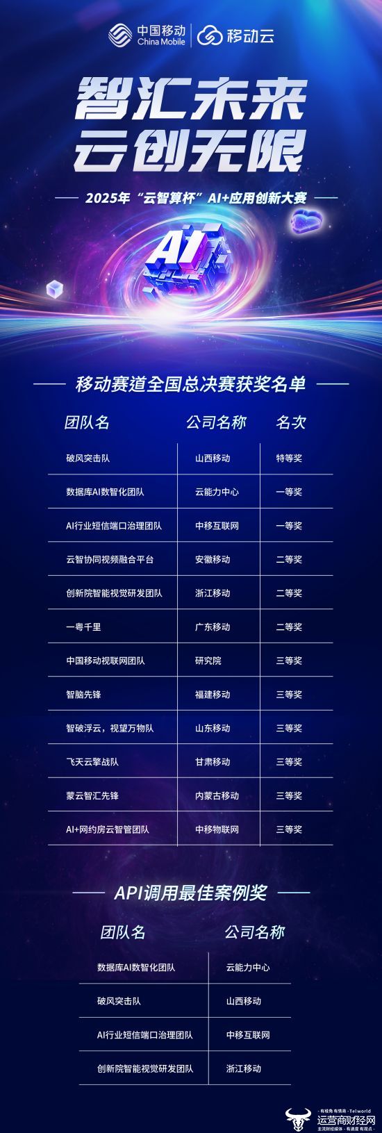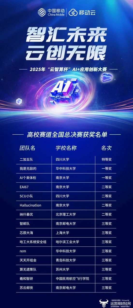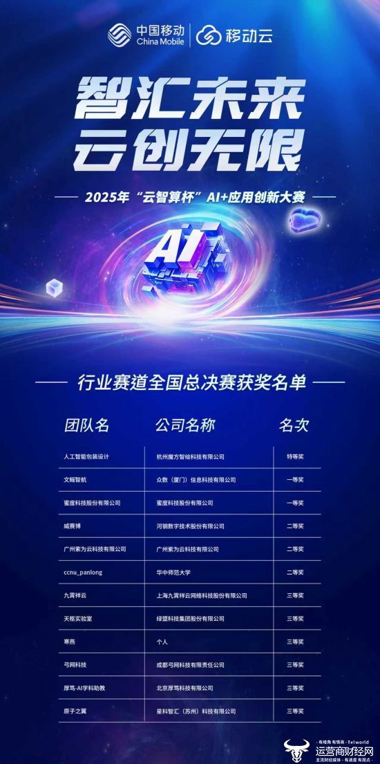 “云智算杯”大赛是中国移动深入贯彻落实国家“人工智能+”行动战略部署,强化央企使命担当,全面推动“云计算”向“云智算”演进的重要举措。下一步,中国移动将持续深化“云智融合”,加大智算基础设施、大模型服务能力与创新人才生态的投入,携手广大开发者与生态伙伴,推动“益企共创”行动计划落地,拉动产业上下游和中小企业实现智能升级,为数字中国建设注入强劲云智力量。