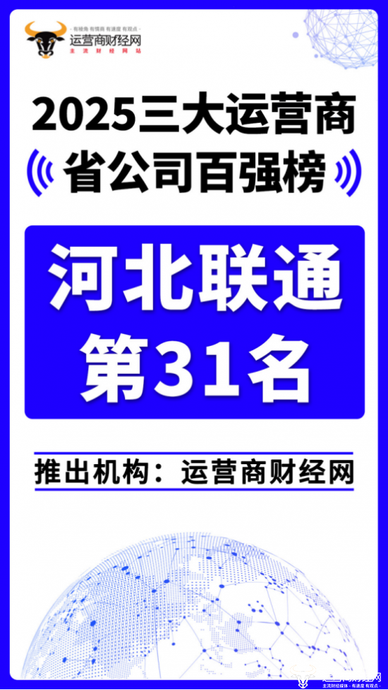 日前,运营商财经网重磅推出“2025三大运营商省公司百强榜”!河北联通位列总榜第三十一。在河北当地通信市场,河北联通与河北移动形成鼎立之势。