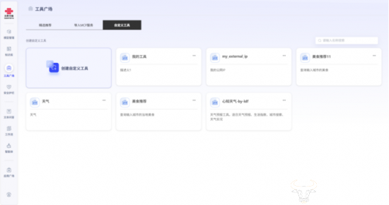 平台将原MCP广场全面升级为工具广场,在导入并管理MCP工具的同时,还支持用户通过低代码方式导入自定义工具,实现AI模型与外部业务系统的无缝连接。这意味着用户拥有了一个“即插即用”的AI工具池,可直接从工具池选取、添加工具实现功能扩展,无需二次开发。