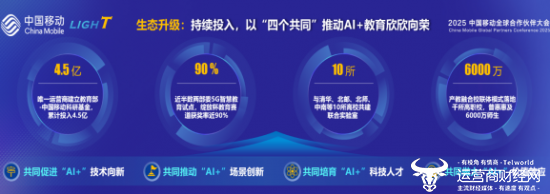在生态升级上,中国移动将持续投入,共同促进“AI+”技术向新、共同推动“AI+”场景创新,共同培育“AI+”科技人才,共同做大“AI+”价值效应,进一步推动AI+教育欣欣向荣。