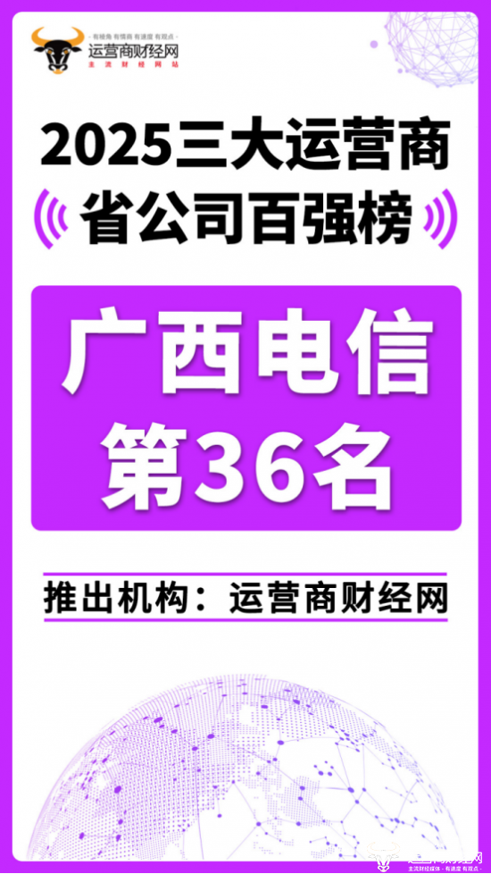 日前,运营商财经网重磅推出“2025三大运营商省公司百强榜”!广西电信位列总榜第三十六。