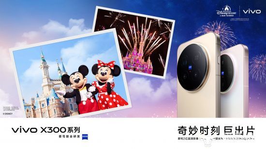 2025 年 10 月中旬起,vivo 手机特别互动体验空间将限时亮相迪士尼小镇——这一毗邻上海迪士尼乐园,集购物、餐饮与娱乐演出于一体的休闲胜地。在互动体验空间内,游客可体验全新 X300系列的前沿影像技术以及趣味互动拍照体验。游园时,无论是记录与挚爱亲友在上海迪士尼度假区共度的温馨时刻,或是捕捉乐园标志性夜间演出“奇梦之光幻影秀”的璀璨光影,vivo X300系列都将助力游客更好地留存每一个精彩瞬间。