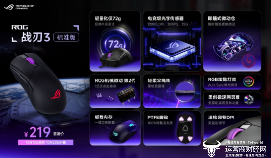 同时,还配备了PTFE脚贴,提供顺滑移动体验,让玩家轻松掌控全局。还采用轻柔伞绳线,柔韧且顺滑,有效减少拖拽感。该鼠标售价199元,还有新品活动价179元和学生专属价149元,10月16日开售。