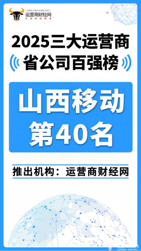 日前,运营商财经网重磅推出“2025三大运营商省公司百强榜”!山西移动位列总榜第四十名。