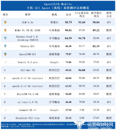 手机 GUI Agent 离线测评发布:中兴 Nebula-GUI 跻身前列,端侧智能场景价值全面释放