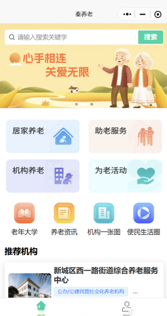 陕西省内的老年人或者监护人如果想要入住或咨询养老机构、养老服务,可以打开“秦养老”小程序,随时查看周边养老机构、养老服务等信息,并进行线上咨询和服务订购,极大简化了老年人入住养老机构的信息收集成本。同时系统还上线了“15分钟便民生活圈”,极大方面老年人便捷查找周边服务。