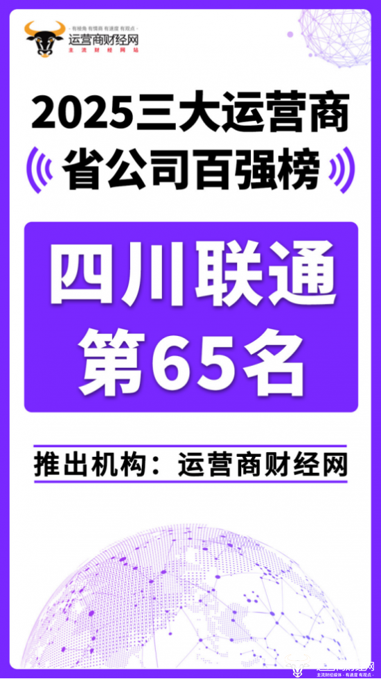 日前,运营商财经网重磅推出“2025三大运营商省公司百强榜”!四川联通位列总榜第六十五名。