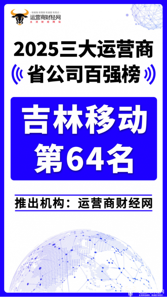 日前,运营商财经网重磅推出“2025三大运营商省公司百强榜”!吉林移动位列总榜第六十四名。