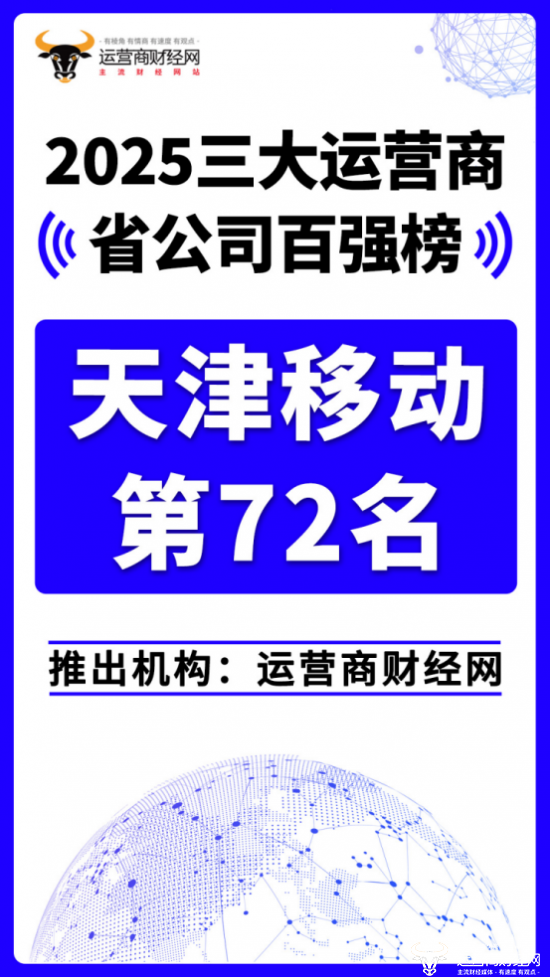 日前,运营商财经网重磅推出“2025三大运营商省公司百强榜”!天津移动位列总榜第七十二名。天津移动年营收不高,属于小型省公司,这是因为天津本地的通信市场也并不大。