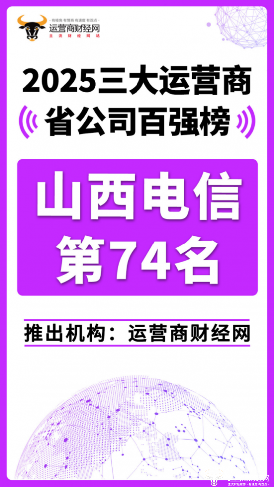 日前,运营商财经网重磅推出“2025三大运营商省公司百强榜”!山西电信位列总榜第七十四名。