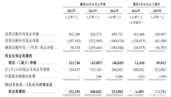 从负债率来看,2022年至2024年,巴奴火锅的资产负债率分别为77.74%、65.38%、60.08%,而2025年一季度巴奴火锅负债总额为10.85亿元,资产负债率增至60.29%,其中流动负债高达7.56亿元,而经营活动所得现金净额由去年同期的1.61亿元下降至1.49亿元,现金及现金等价物则下降至2.73亿元,资金压力较大。