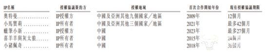 但值得注意的是,公司当前拥有的26个IP全部来自外部授权,而非独家合作,授权协议期限在1至3年内,也就是说,IP授权方可同时与金添动漫的竞争对手合作,且金添动漫可能无法续签现有授权协议,而授权一旦终止,金添动漫或将丧失销售该IP产品的权利。