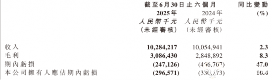 据优然牧业2025年中期业绩报告,公司上半年实现收入102.84亿元,同比增长2.3%,本公司拥有者应占期内亏损为2.97亿元,同比收窄10.4%,但仍为亏损状态。