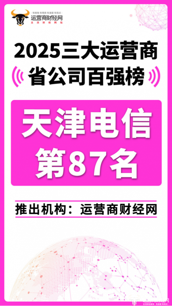 日前,运营商财经网正式推出“2025三大运营商省公司百强榜”!天津电信名列第八十七位。