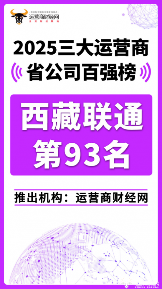 日前,运营商财经网正式推出“2025三大运营商省公司百强榜”!西藏联通名列第九十三位。