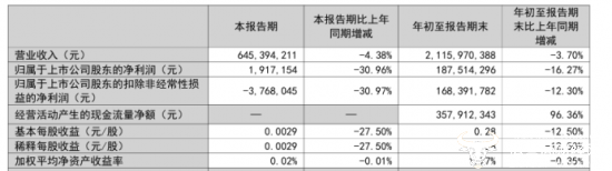 而今年前三季度,张裕营业收入为21.16亿元,同比下降3.70%,归母净利润为1.88亿元,同比下降16.27%。其中,第三季度营收同比下降4.38%至6.45亿元,归母净利润为191.72万元,同比下降30.96%,而扣非归母净利润亏损376.8万元,同比下滑31%,核心盈利能力承压。