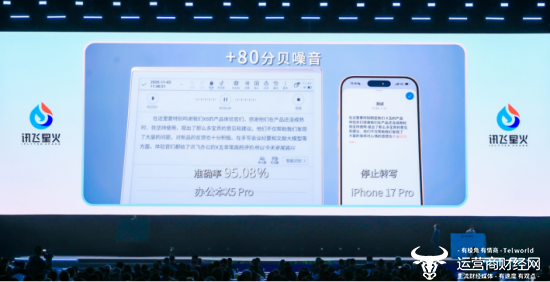 凭借独家“AI+麦克风阵列技术”,讯飞智能办公本X5通过首创的上4下4环八麦克风阵列实现超强抗噪,识别效果远超iPhone 17 Pro,高噪环境下识别准确率达95.08%;讯飞AI翻译耳机首创单耳三麦多感融合降噪系统,在复杂噪声下识别准确率高达97.1%;讯飞双屏翻译机2.0则独创强降噪模式,在90dB噪音下识别率达98.69%。此外,业界首个软硬一体的讯飞同传麦克风能实现自动翻译免切换,同传播报首响延迟低于2s,支持私有化部署。
