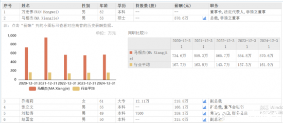 可以看出,马相杰已在双汇发展工作了超二十年,经验十分丰富。马相杰2024年薪酬为570.6万元,相较于2023年的554.8万元,增长了15.8万元,是公司高管中的最高薪酬,但还没有恢复到他2021年的薪酬水平,其2021年薪酬为959.3万元,是公司高管中唯一薪酬曾超过900万元的。
