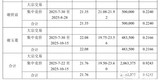 一致行动人谢世谊以21.35元/股的价格减持公司50.0万股,谢玉菱则减持公司48.35万股,减持均价为22.08元/股。综上来看,五个股东合计共减持公司206.3375万股股份,共计套现约4490.09万元。