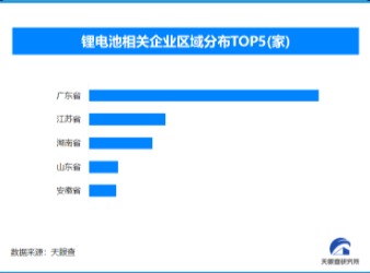 天眼查专业版数据显示,截至目前我国现存在业、存续状态的锂电池相关企业超2.9万家。从区域分布来看,广东省、江苏省、湖南省锂电池相关企业数量位居前列,三个省市数量总和超过1.68万家,占企业总数的57.5%。