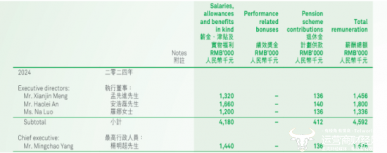 而门店的大幅增长,主管市场开发和门店管理的孟先进功不可没。过往财报显示,孟先进2024年薪酬为145.6万元,相较于2023年的220.5万元,下降了74.9万元,低于副总裁安浩磊,后者去年薪酬为180.0万元。