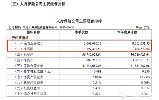 从财务表现上来看,在集团披露的偿付能力公告中,阳光人寿今年前三季度实现保险业务收入达921.27亿元,较 2024 年同期的 709.18 亿元同比大幅增长29.91%;同时其净利润达 48.47 亿元。不过在新准则口径下,其净利润则统计为 52.5 亿元。
