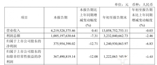 两家企业财报显示,重庆啤酒前三季度啤酒销量同比微增0.42%至266.81万千升,营业收入为130.59亿元,同比微降0.03%,归母净利润为12.41亿元,同比下降6.83%,营收和利润均有所下降。