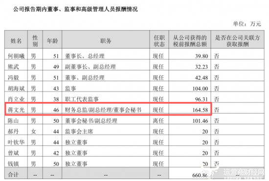 但是蒋文光去年的年薪却较2023年的101.1万元涨到了164.58万元,在三位副总经理中,他不仅是最年轻的,也是薪酬最高的,是董事长何朝曦的好几倍,何朝曦2024年只领取了薪酬39.8万元,还不如员工的平均薪酬。