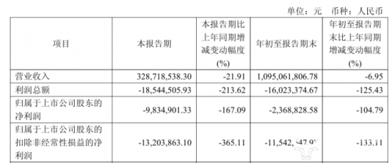 此外,财报数据显示,均瑶健康前三季度营业收入为10.95亿元,同比下降6.95%,归母净利润为-236.88万元,由盈转亏,同比大幅下降104.79%。其中第三季度公司营业收入为3.29亿元,同比下降21.9%,归母净利润亏损983.49万元,同比下滑167.09%。而公司核心产品益生菌饮品前三季度收入也同比下降21.35%至3.86亿元。