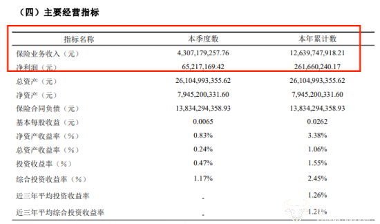 公司在前三季度累计实现保险业务收入达126.40亿元;累计净利润实现2.62亿元,比去年同期的0.35亿元,大幅暴涨了约648.57%。虽然盈利不太多,但是增幅很大。